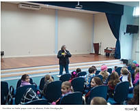 de autógrafos com os alunos do primeiro ano à oitava série.